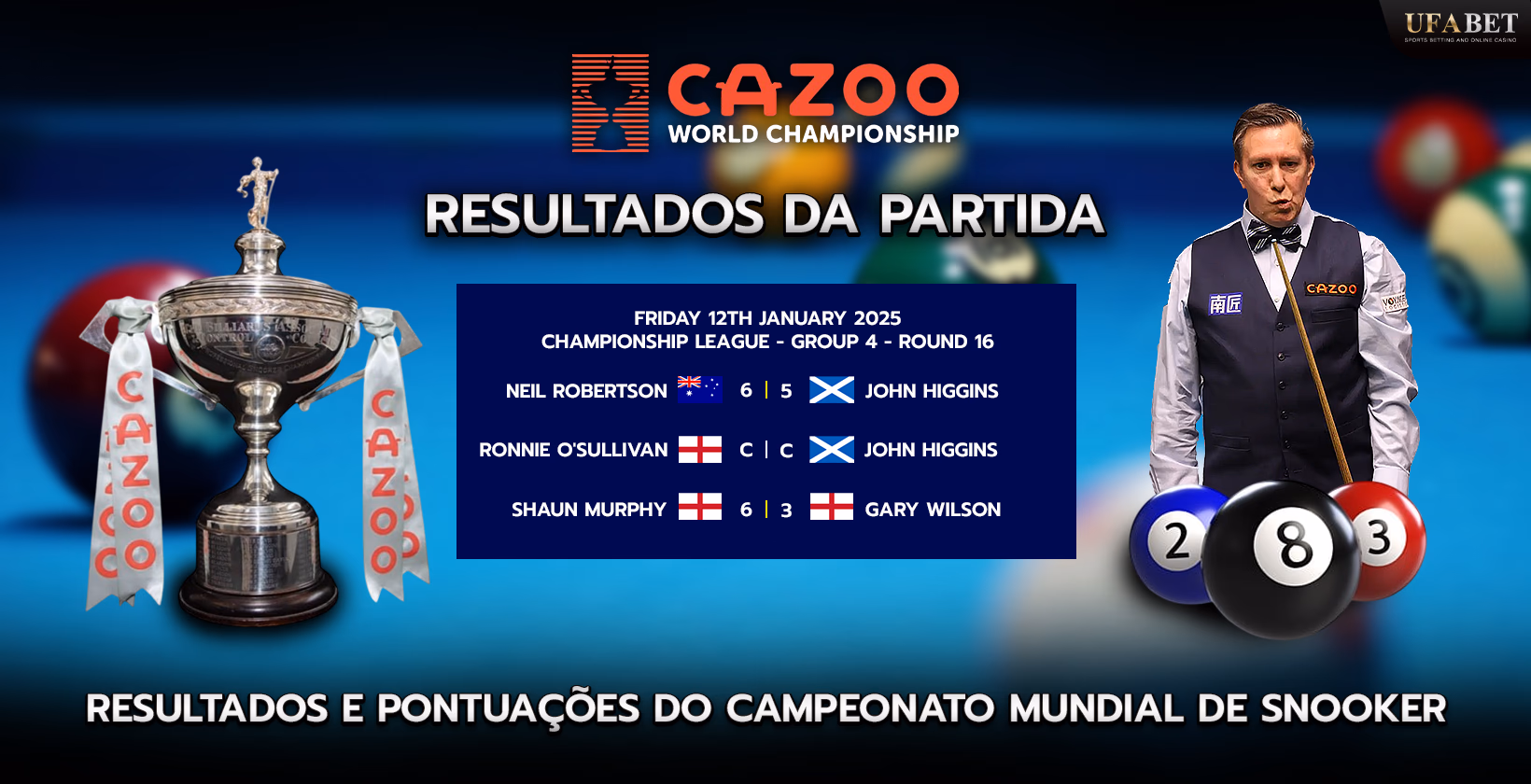 Resultados e Pontuações Mais Recentes do Campeonato Mundial de Snooker